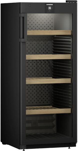 Полезный объем отдельностоящего винного шкафа Либхер WPbl 4601 составляет 328 л. А его габариты составляют 128.4×61.5×85 см. Настроить температуру в винном шкафу поможет электронная система управления, которое осуществляется с помощью жидкокристаллического дисплея и сенсорных кнопок. Есть цифровой индикатор температуры винного отсека. Предусмотрена функция защиты от детей. О неплотно закрытой двери вам сообщат специальный звуковой и световой сигналы.